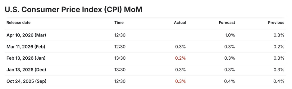 ➖ Neutral (In-line CPI)