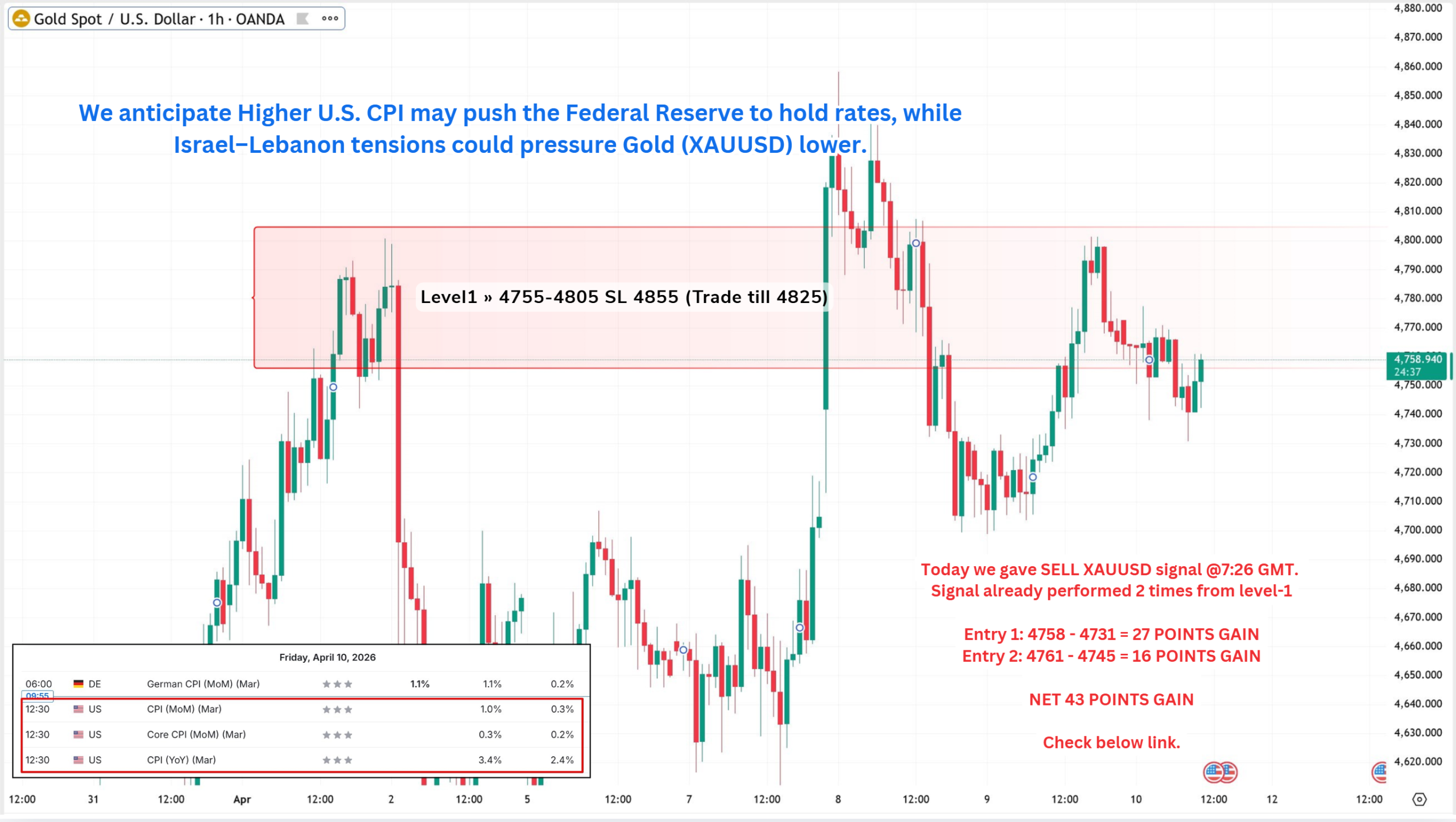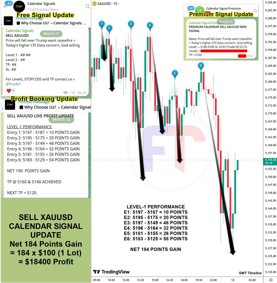On last US CPI data (11-3-2026) we predicted higher data, & as per that we suggest to SELL XAUUSD & as a result, we made a profit of 184 points according to the signal we gave.