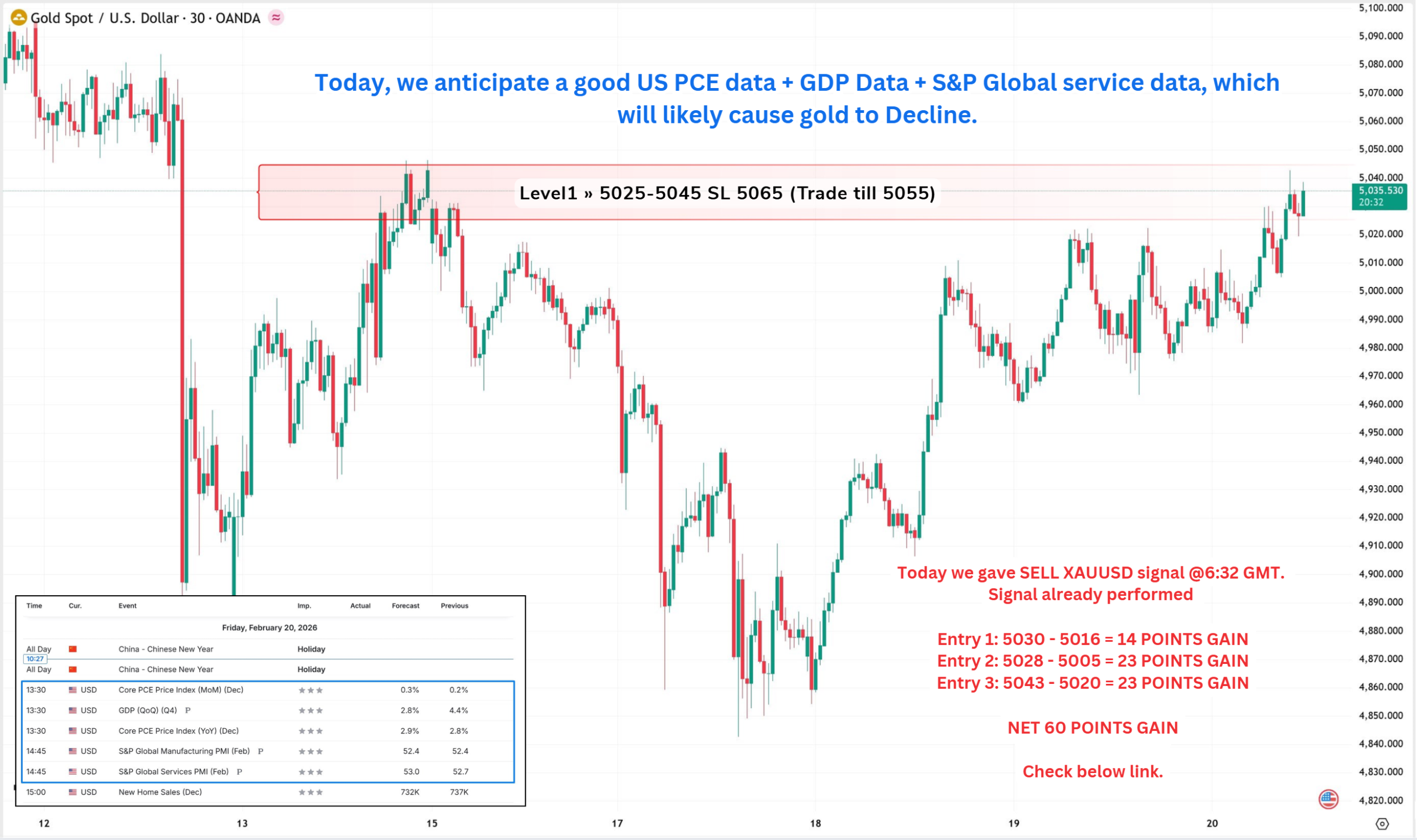 Gold at a Turning Point: How U.S. PCE, GDP and Services PMI Could Move XAUUSD- 20th Feb. 2026