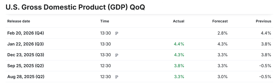 A strong GDP figure signals economic resilience. When growth remains solid, recession fears ease and capital rotate into equities and risk assets rather than safe havens like gold.