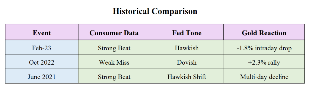 - Example: If gold trades at $2,035 before data, a strong release could push it toward $2,000–$1,985 quickly.