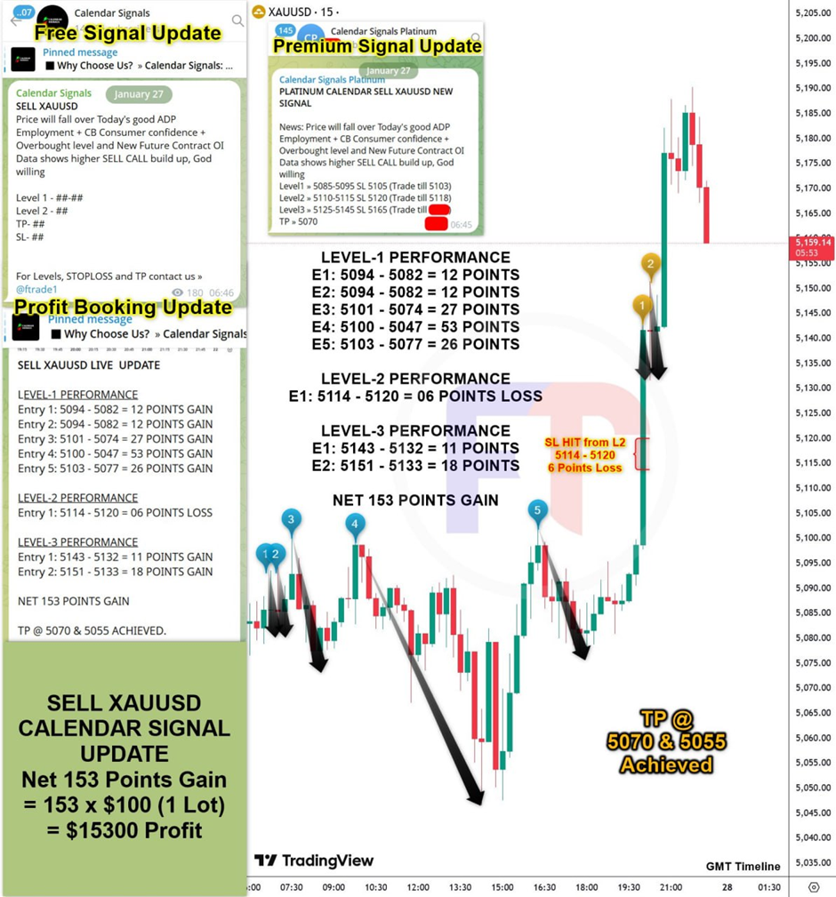 On last U.S. CB Consumer Confidence Data (27-1-2026) we predicted good data, & as per that we suggest to SELL XAUUSD & as a result, we made a profit of 153 points according to the signal we gave.
