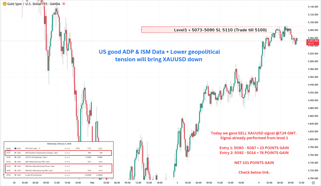 On last US ADP & ISM Data (7-1-2026) we predicted good data, & as per that we suggest to SELL XAUUSD & as a result, we made a profit of 87 points according to the signal we gave.
