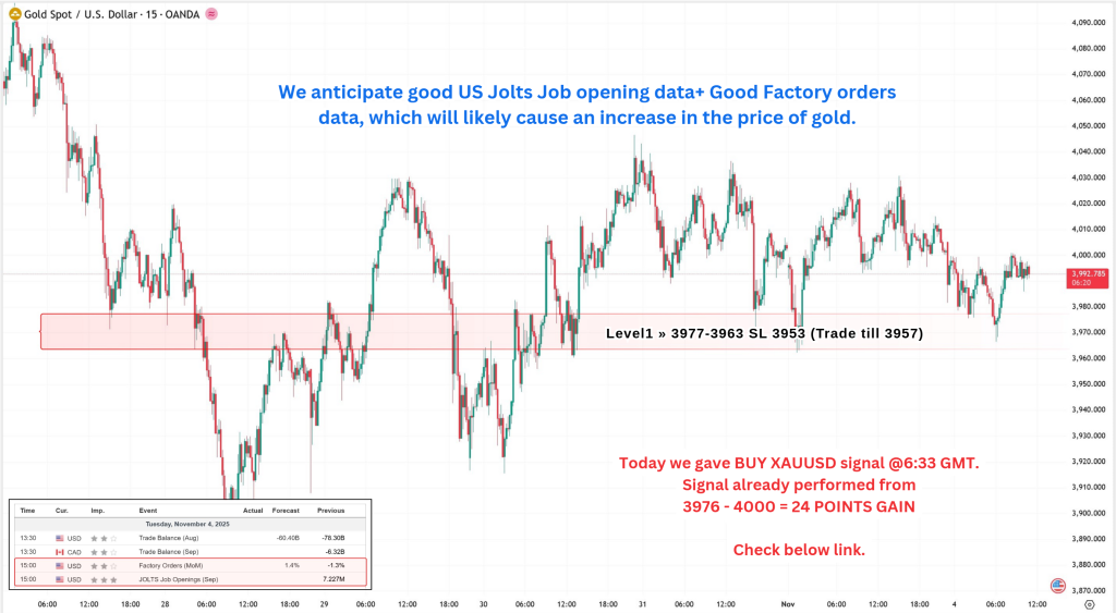 Here’s a blog-style breakdown of how strong US JOLTS job openings and robust factory orders data released today (4 Nov 2025) could push XAU/USD (gold) higher in certain scenarios—despite the “good” data—because strong data affect policy expectations. I’ll cover the reasons, the scenarios for gold, and a historical comparison table.