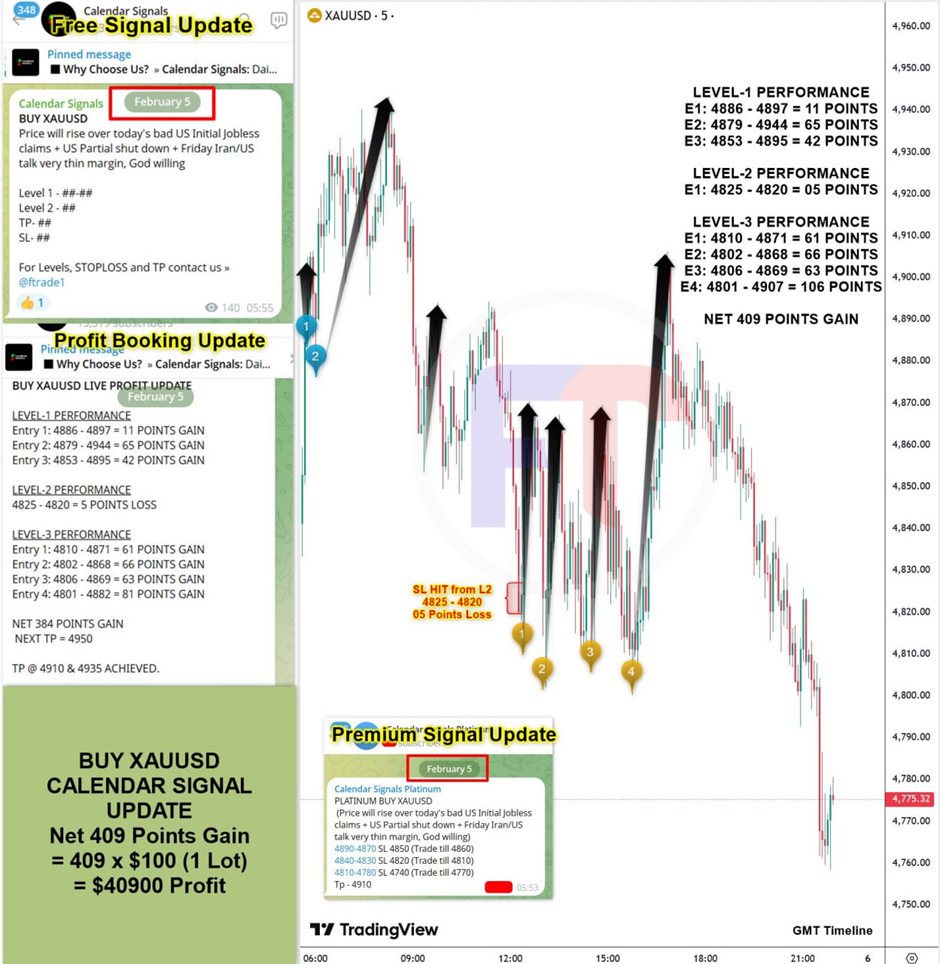 On last US Initial Jobless claims data (5-2-2026) we predicted bad data, & as per that we suggest to BUY XAUUSD & as a result, we made a profit of 409 points according to the signal we gave.