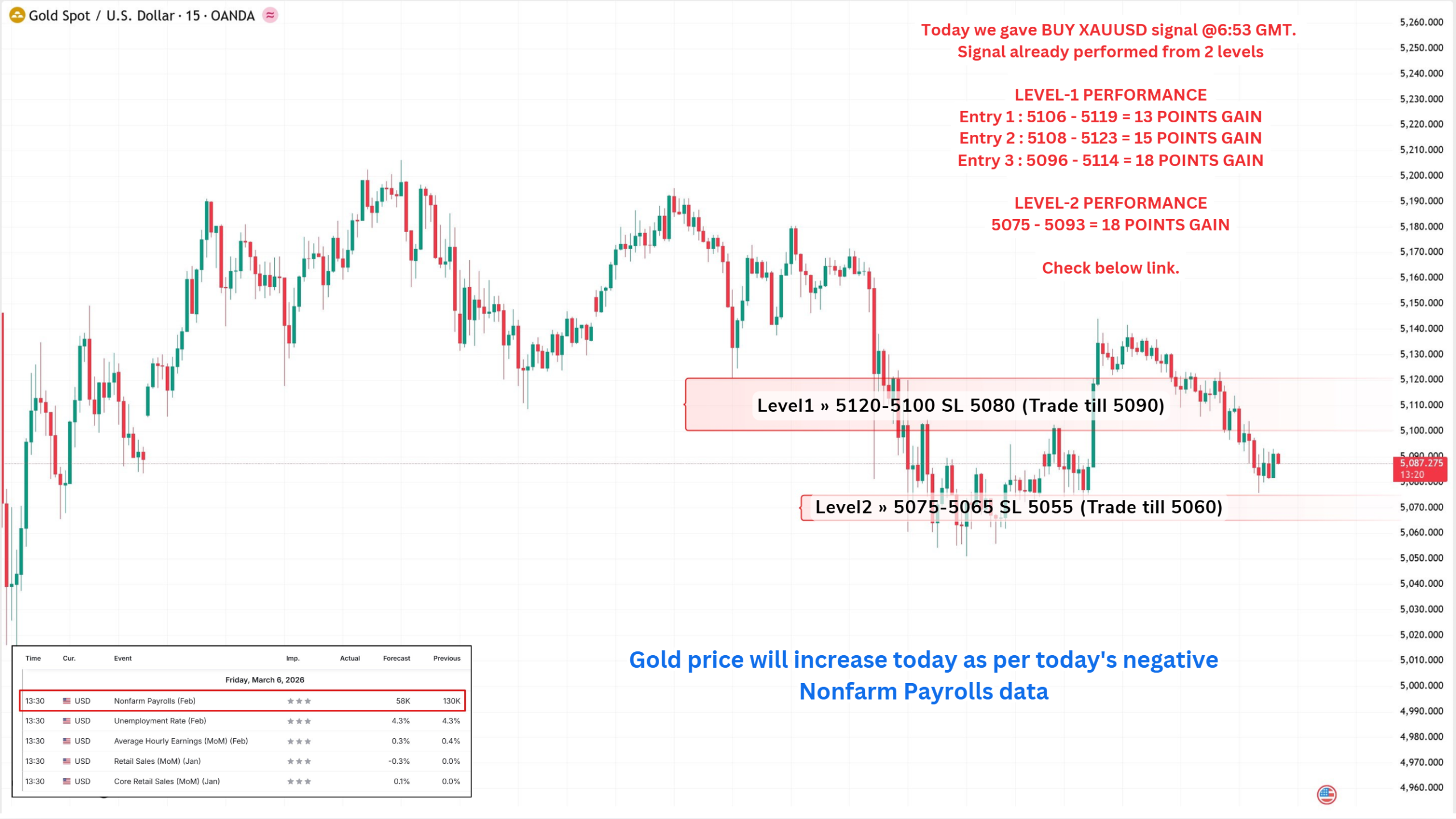 U.S. Non-Farm Payrolls and Gold: What to Expect for XAUUSD Today – 6th March 2026