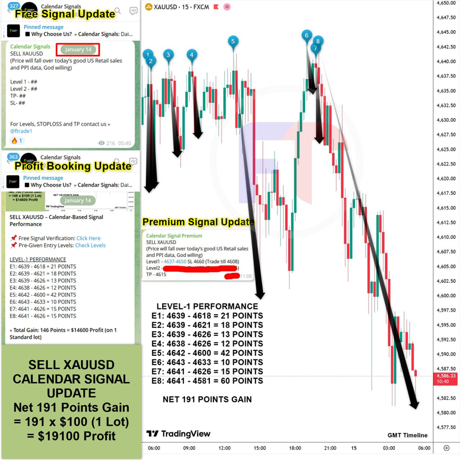 On last Retail Sales data (14-1-2026) we predicted good data, & as per that we suggest to SELL XAUUSD & as a result, we made a profit of 191 points according to the signal we gave.
