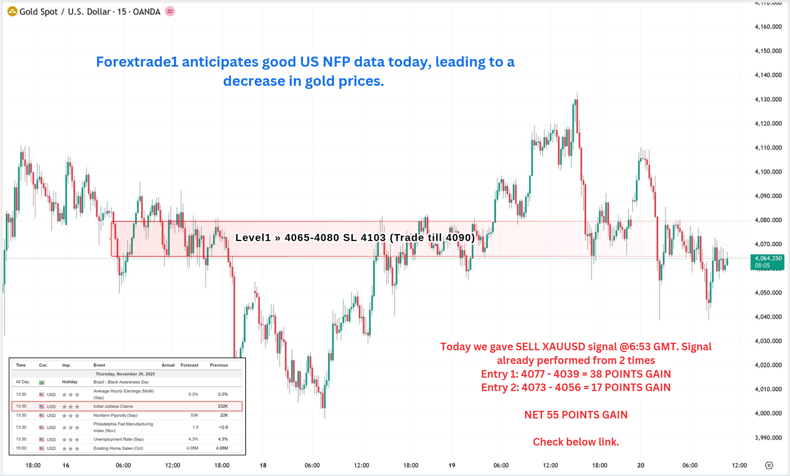 On last NFP data (24-10-2025) we predicted good NFP data, & as per that we suggest to SELL XAUUSD & as a result, we made a profit of 86 points according to the signal we gave.