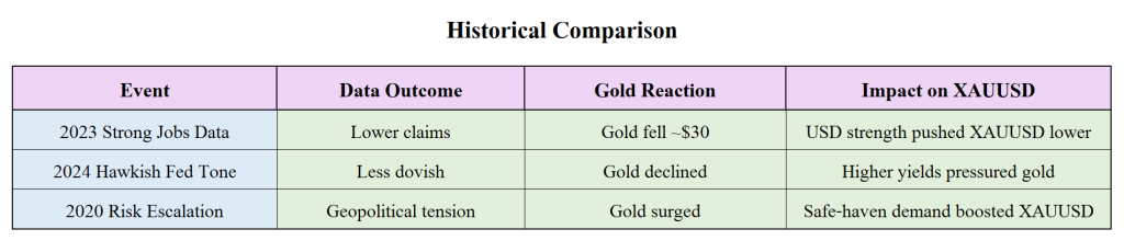 As of now, U.S. Initial Jobless Claims data has not yet been released (scheduled for 13:30 GMT). However, current macro signals suggest downside risk for XAUUSD.