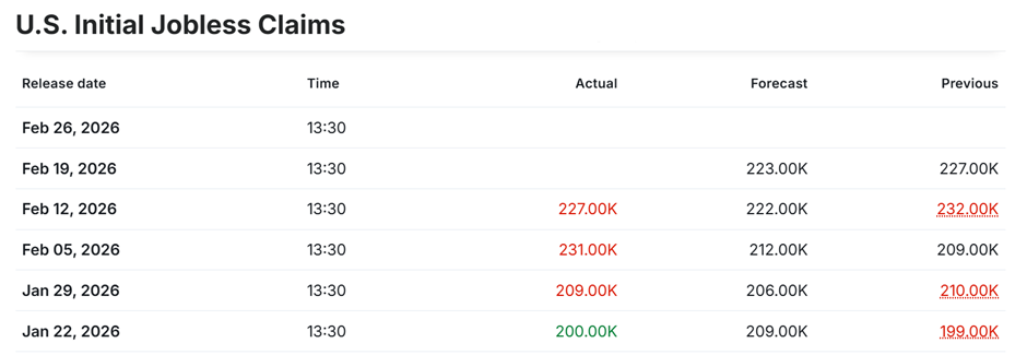- Stronger U.S. Initial Claims (Lower Claims = Stronger Labor Market)