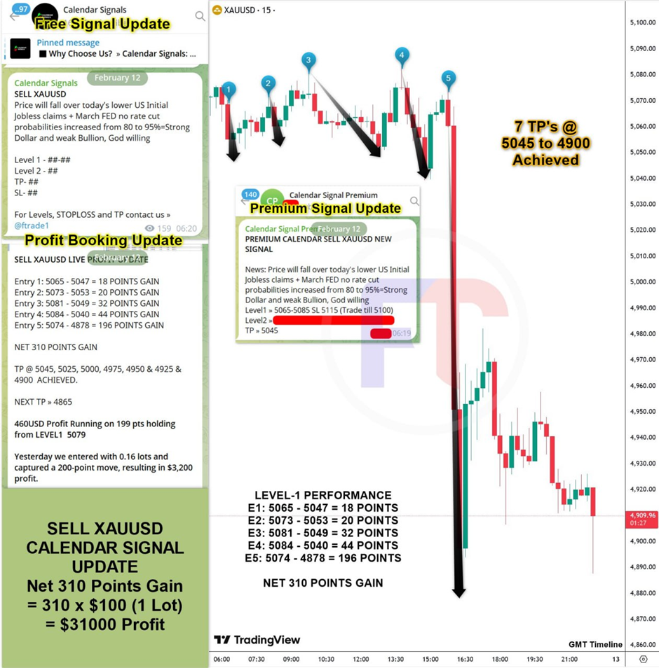 On last US Initial Jobless claims data (12-2-2026) we predicted lower data, & as per that we suggest to SELL XAUUSD & as a result, we made a profit of 310 points according to the signal we gave.